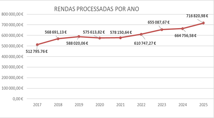 Rendas processadas por ano